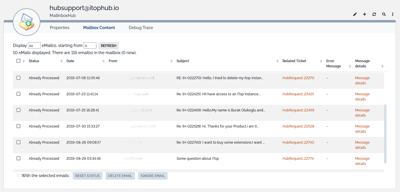 It automatically scans several mailboxes to create or update tickets (Incidents or User Request).